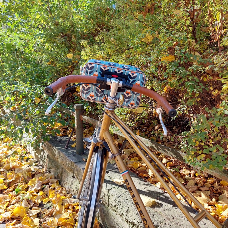 Du bist auf der Suche nach einer kleinen Lenkertasche?Diese Flaschentasche für den Fahrradlenker ist ein idealer Begleiter auf langen oder kurzen Touren oder bei Deinen alltäglichen Unternehmungen. 8 x 7 x 17 cm mit Futterstoff innen,mit Kordelzugverschluss, Schnallen zur Montage am Lenker Farbe aussen: mit Motiv (wie abgebildet) Farbe innen: grau