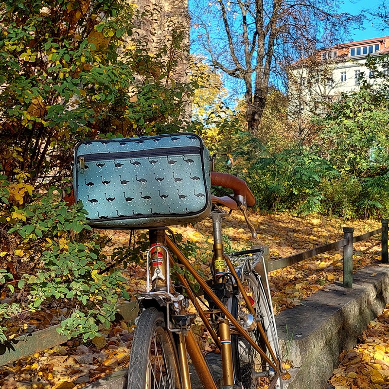 Diese Tasche aus wasserabweisender Plane ist leicht umrüstbar von der Schultertasche zur Lenkertasche. Der abnehmbare Tragegurt wird verstaut, während die Tasche mit Schnallen am Lenker montiert wird. 15 x 24 x 10 cm mit Futterstoff innen, ein Hauptfach und ein kleines Vorderfach, mit Reissverschlüssen Farbe aussen: mit Motiv...
